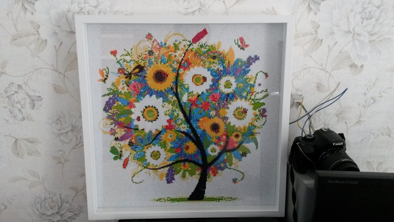 Первой работой было дерево. В выходные наконец одела его в рамку :)