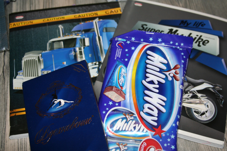 Сладкое для сына, тетрадочки)))) Свечка синяя оченьь ароматная, виноградные пока не открывали)