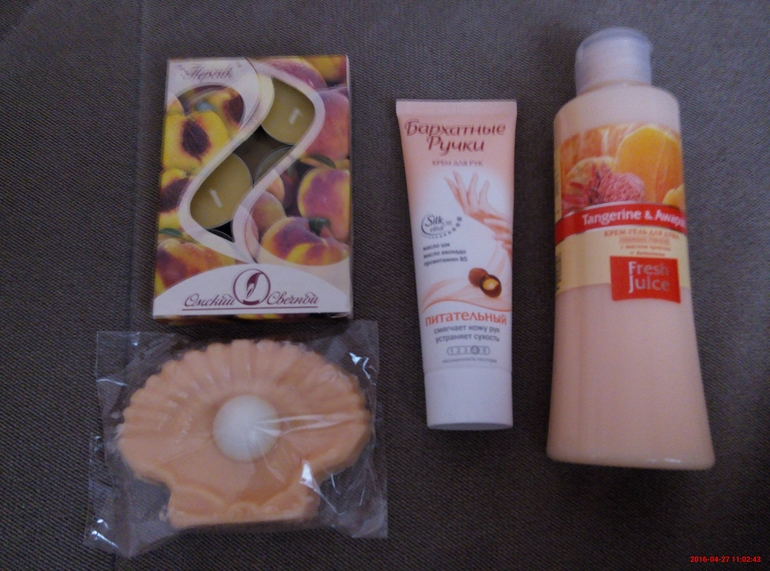 И всякие нужности для меня: свечки,крем,мыльце и гель