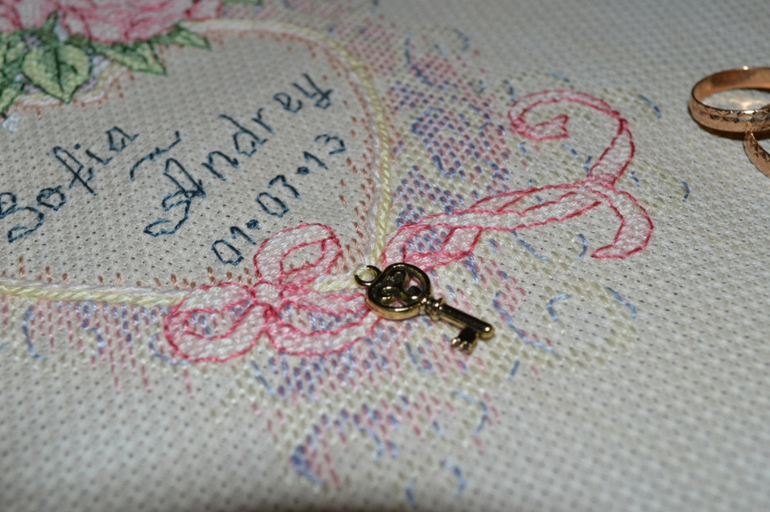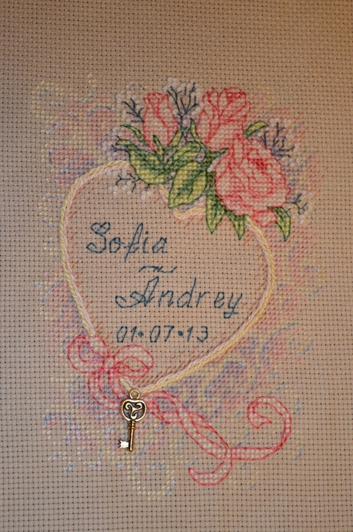 Решила я вышить самой старшей (двоюродной) сестре метрику на годовщину свадьбы. Во время работы поняла, что вторая старшая сестра может на меня обидеться, что ей подарок такой не достался. Несколько дней поисков подходящего в интернете и я держу в руках распечатанную схему от Дим.