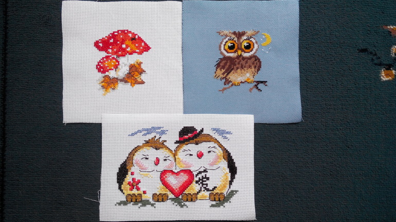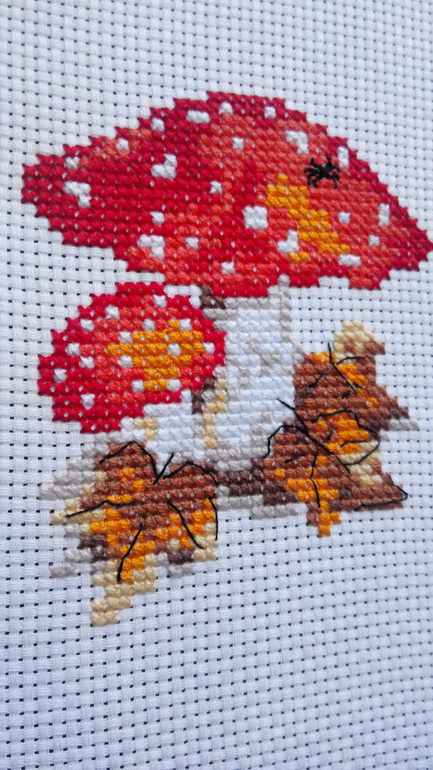 Совенка, что на синем, я тоже вышивала) Хорошенький, не смогла пройти мимо) Эту панновскую серию очень люблю, хотя вышивала только кошек из неё. Мухоморчики такие ... осенние.