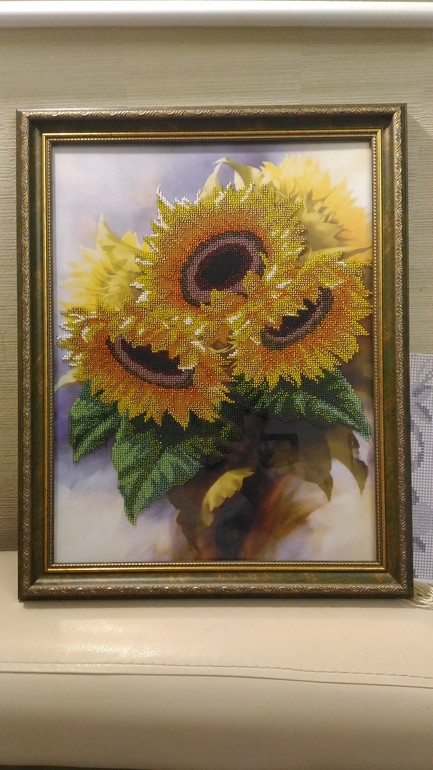 2. Подсолнухи (вышивка бисером). В подарок моему шефу.