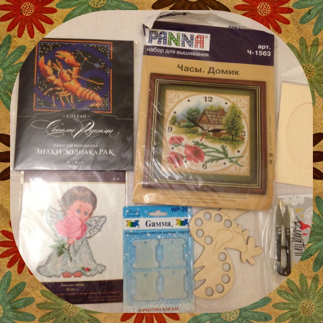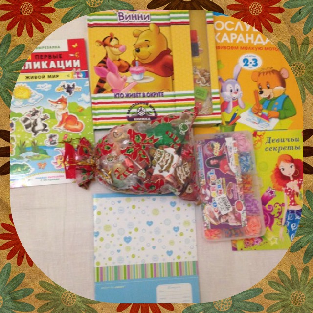 Вернее сказать- открытку и много подарков! Открыточку не покажу, она моя. Наборчики. Такая чудесная девочка-ангел, совершенно волшебный знак зодиака, замечательные часы. А какие аксессуары.... ножнички, бобинки, петух чудесный. Дальше все стало совсем сложно (совета я не послушалась!) дочке все стало очень нужно, и сладости, и блокнот, и кулинарная книжка, особенно аппликации для малышей и книжечки, все-все, поэтому младший получил своё только на следующий день.