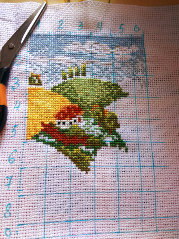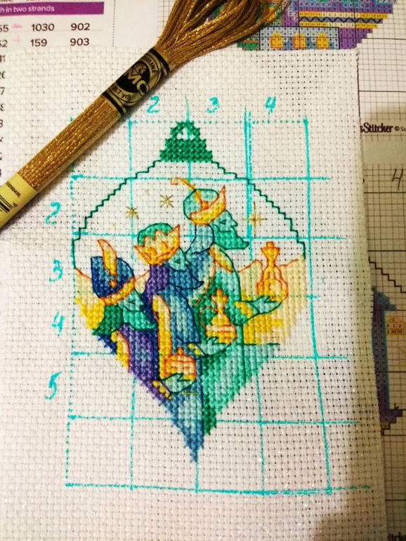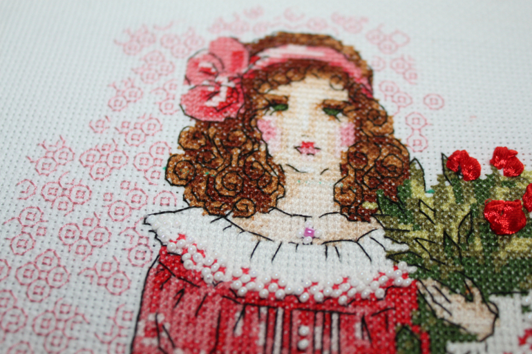 Лицо, руки - это ооочень похожие оттенки телесного. Очень тяжело вышивать.