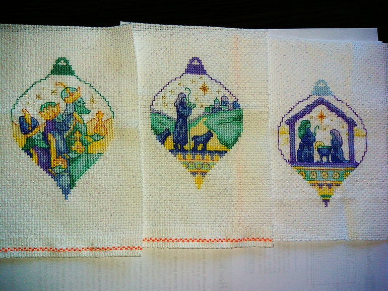Последние работы года - это 3 тематические картинки "Рождество". Вышиты все 3, ждут оформления в виде открыток