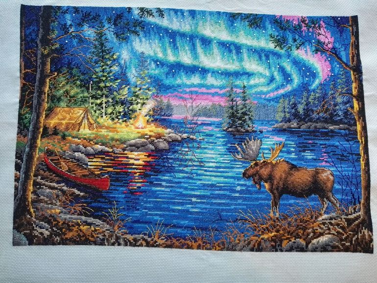 Наконец то и я могу поделится с вами своими картинами)) Это одна из первых вышитых мною картин. Северная ночь от Дименшен. Обожаю эту фирму. фото под катом