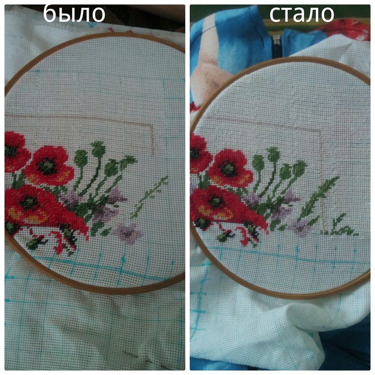 Долго искала что изменилось, за лошадью серый фон увидела. Хорошая работа. У меня тоже маки полукрестом из 4 нитей только.