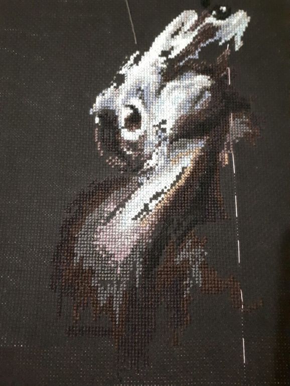 По вышивке: дошила я все крестики, даже успела немного "побэчить", но с трудом идет( схема бэка не очень удачная и я невнимательная, нет-нет да напутаю - распускать приходится.