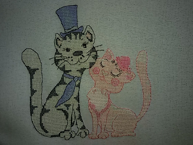 Попутно с этим гобеленом вышились две небольшие работы. Купила на Али большущий отрез равномерки и не терпелось ее испробовать в работе. Для пробы пера был выбран милый сюжет от дизайнера Тамрико Ламаридзе. Эти котики вышились ко Дню всех влюбленных.