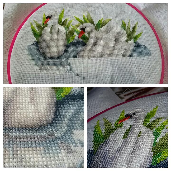 А сейчас на пяльцах уютно расположились чудесные лебеди от той же Серафимы. Я влюбилась в этот дизайн с первого взгляда, и совсем скоро будет готов отшив.