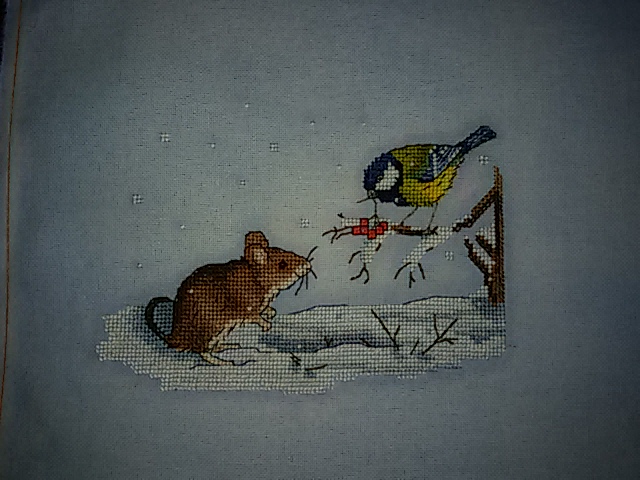 И не смогла пройти мимо очаровательной зимней мышки от Серафимы Абрамовой. Эта же китайская равномерка была окрашена обычными чернилами для печати.