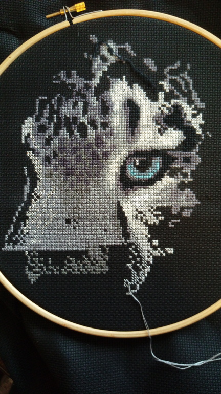Его надо бы на рамке вышивать, канва сильно накрахмалена, но мне не понравилось, вернулась к пяльцам.