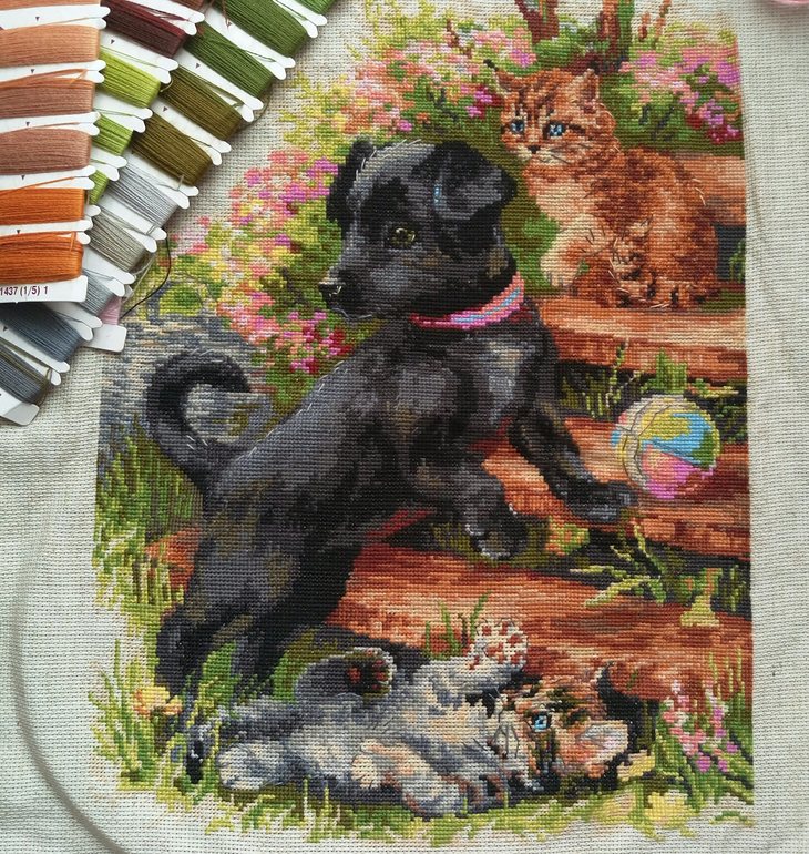 Рукодельная беседкаВсем здравствуйте! Только вступила в сообщество 😊 Вышиваю много лет, но раньше простенькие вышивки небольших размеров, потом несколько лет перерыв и сейчас вышиваю уже более глобальные вещи. Стараюсь, чтобы был минимум процессов начатых, в идеале 1 (сейчас как раз закончила большой сюжет и вернулась к долгострою, не уверена, что не переключусь, черная канва это зло). Из последнего вышитого - набор от риолис