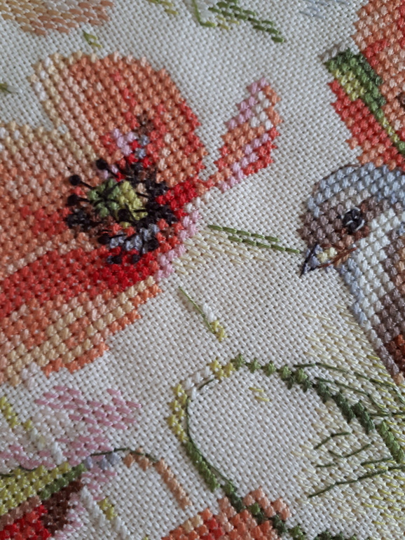Вышивается легко. Схема крупная, цветная, читается хорошо. Канву сразу заменила на равномерную. В процессе работы не хватило ниток одного цвета, написала производителю, нитки прислали.