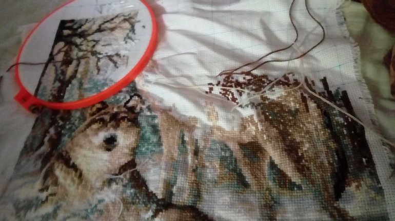 Всем привет!!! Сначала покажу своё продвижение по вышивке. Всё по плану, прибавился верхний угол слева. Было