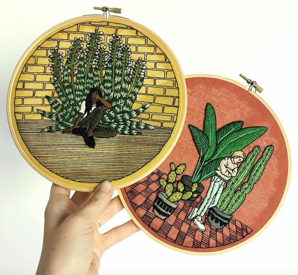 Сара К. Беннинг - американская художница, в настоящее время живет в Менорке, Испания. Родом из Балтимора, она закончила художественную школу при Чикагском институте искусств. Вскоре после получения образования, в 2013 году, девушка, работая няней, в свободное время начала совмещать рисование с любимым расслабляющим хобби - вышивкой. Это увлечение быстро захватило ее, превратилось в любимую работу, и теперь Сара творит в своей солнечной квартире в Испании. На ее вышивках изображены цветы, которые в изобилии растут в квартире и в оранжереях возле дома художницы.