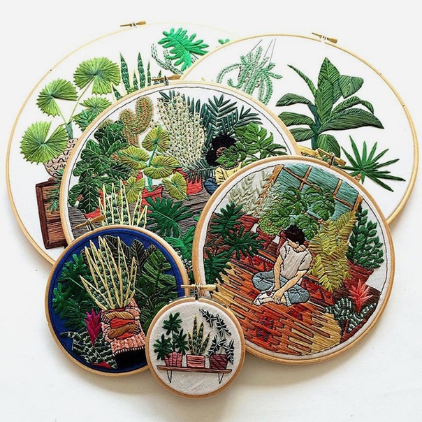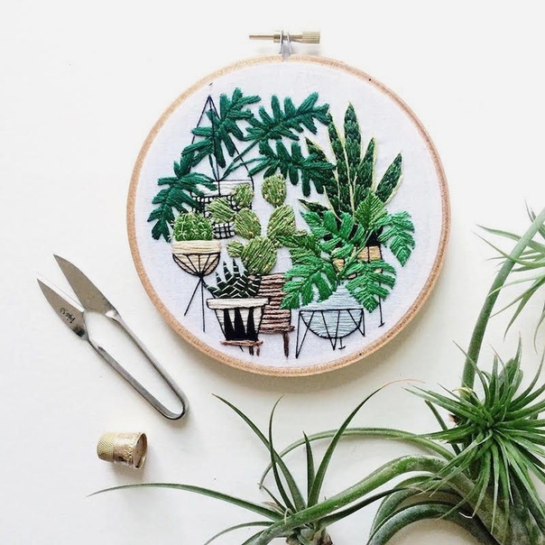 Кто-то выращивает любимые цветы на приусадебном участке, лоджии, кухонном подоконнике, а кто-то, например, Sarah K. Benning, делает это на ткани при помощи иголки и ниток.