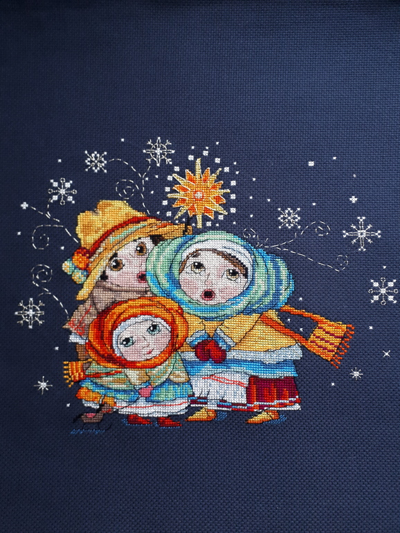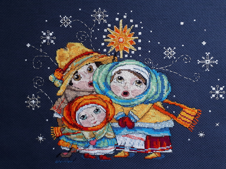 Вышивала подбором по схеме от "Мережка ", очень нравится эта серия) С удовольствием вышила бы всех деток)