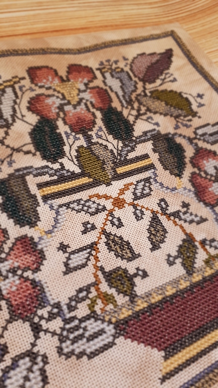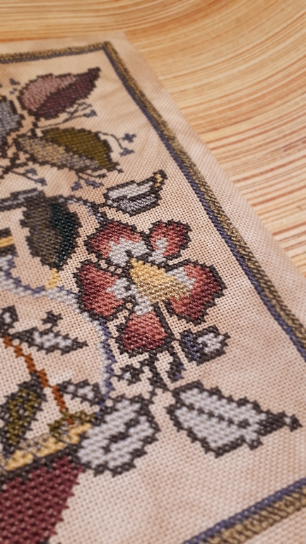 С окончанием. Ух, какая вредная вышивка попалась. Но ты её осилила и не сдалась. Молодец!