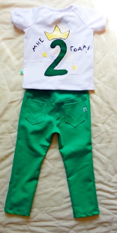 Шьем детямСшила подруге вот такой комплект на двухлетие сына!Увидела в магазине чудесного цвета джинсовую ткань и влюбилась)она полностью доверилась полёту моей фантазии и ничего сама не советовала,получилось вот так!Цвет брюк такой яркий и сочный,что фотик не передает истины((((
