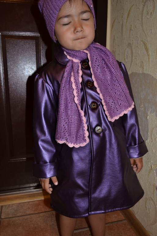 Далее плащ из кожзама. Подклад флис. Ох и намучалась я с этим кожзамом....... Первый раз шила. Пока доперла как без тефлоновой лапки все это смастерить, нервов ушло куча)))))