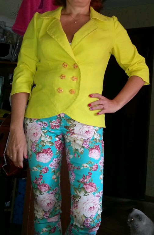 Себе пошила вот такой костюмчик из тонкой джинсы. Пока шила, пузо нажрала. Теперь под штанишки худеем)))))