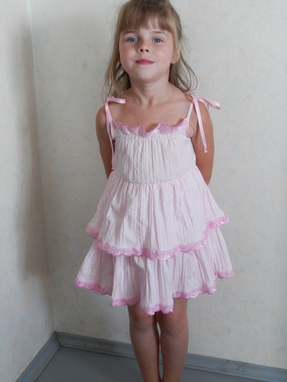 Шьем детямЛето уже почти закончилось,а у нас появился новый сарафанчик из хлопковой жатки. Лекал у меня не было ,а было два малюсеньких кусочка ткани.Купила кружево и немного украсила модельку.