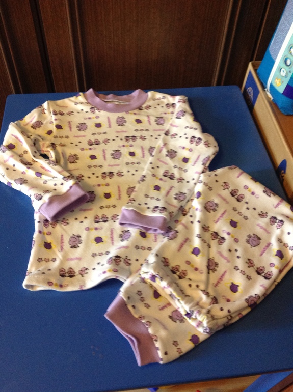Кроила скопом, чтобы ковер не перенастраивать. Из интерлока получились очень плотные. Будут как костюмчики. Поэтому еще надо тоненьких нашить