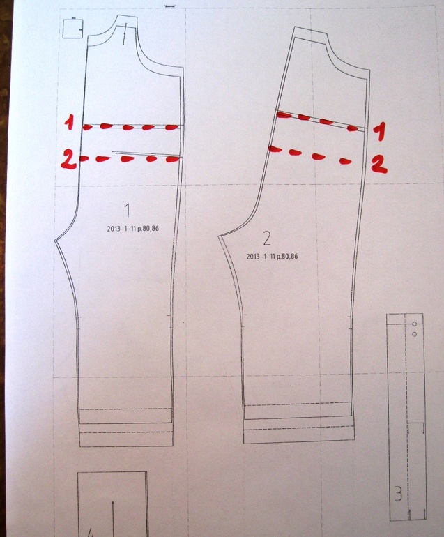 И вот красным отметила- какую часть нужно убрать чтобы сделать штанишки..на уровне 1 или 2? И вообще,возможно ли комбез реорганизовать в штанишки?