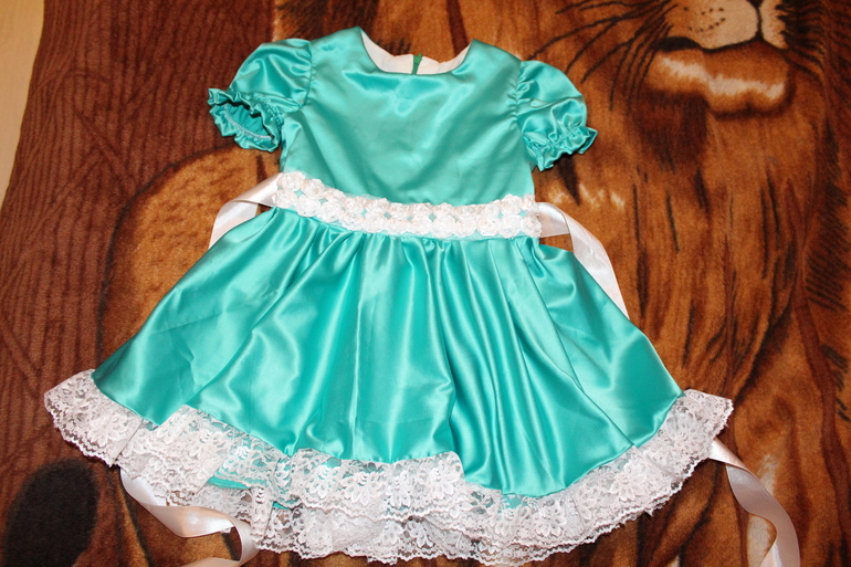 Платье сшилось на утренник в детском саду к празднику, посвященному женскому дню. Юбка-солнце, центр немного сместила вперед. Лиф платья на хлопковом подкладе.