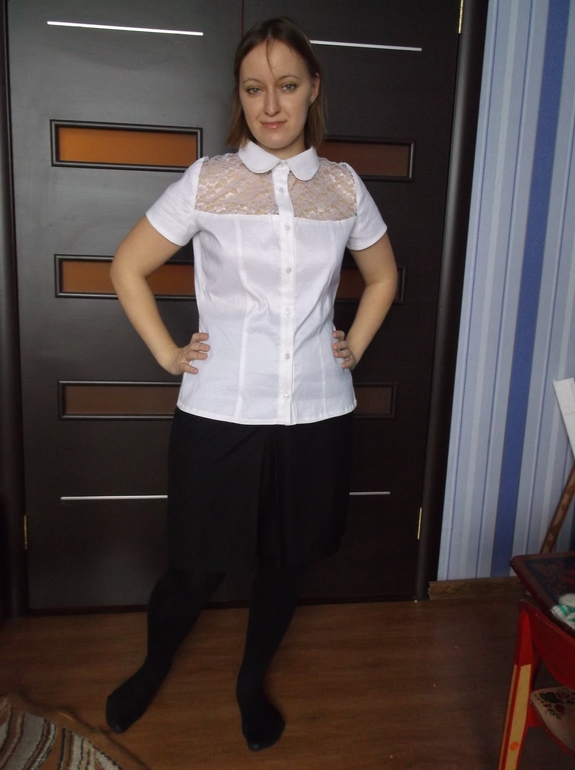 А потом подумала, а что если заправить ее в юбку? 15 лет носила все навыпуск, отвыкла уже, а тут посмотрела и вроде ничего, даже талия появилась))))