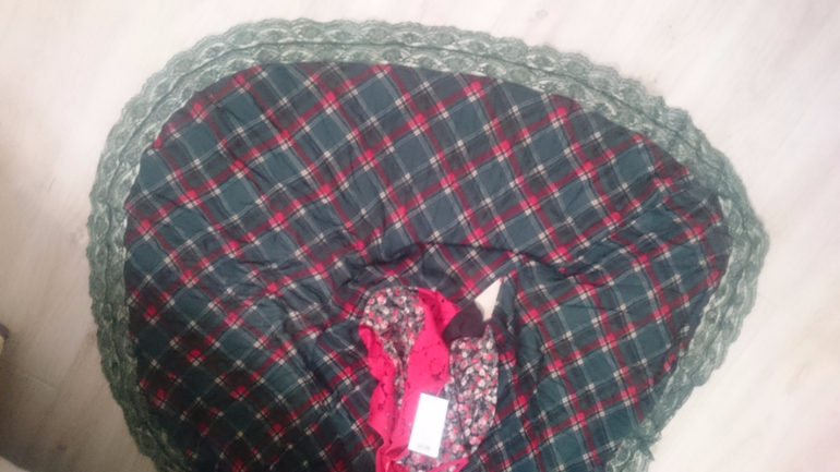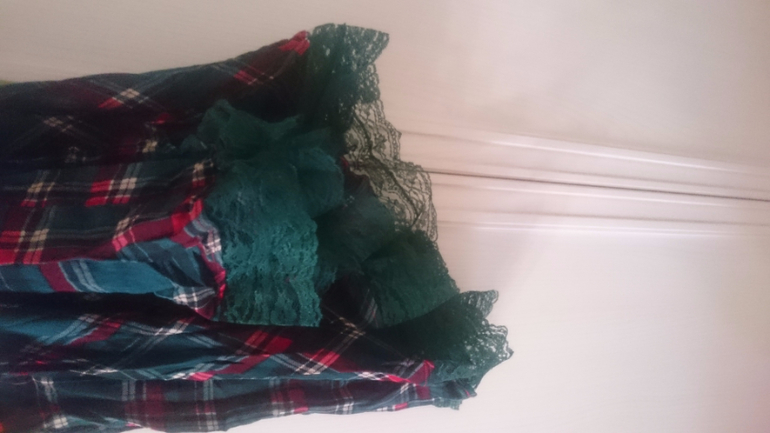 Кружево прямое, а низ юбки круг. Кружево нормально не ляжет. Нужно его было присобрать и пришить уже готовую оборку.