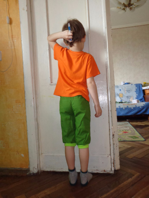 Шьем детямПеребирала летние вещи сына и поняла ,что у него всего 2 пары шорт . Увидела выкройку бермудов из Оттобре 3/13 модель 13 и очень она мне понравилась .Для своего худенького шестилетки взяла размер 98 - сел идеально )))) Ткань хлопок ,на манжетах и поясе рибана ,отстрочку швов делала конрастной ниткой в цвет рибаны. карманы на попе делать не стала .Мне очень понравился результат )))