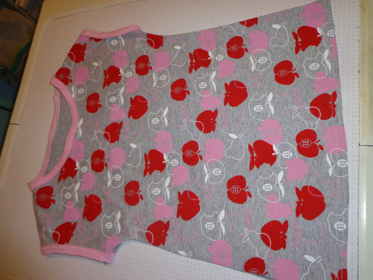 Две футболочки Серебрине. Мое платье тоже из такой ткани с красными яблочками.