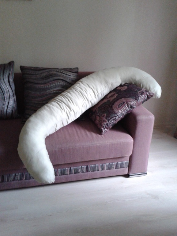 Подружка "скулила", что тяжело ей пузиком спать)))попросила сшить.Шила без выкройки(собственно она тут особо и не нужна)),чехол можно было чуть поменьше сделать.Но в след. раз учту,хотя это никак не мешает,а может даже и лучше,что он чуток больше основы.Вообще в процессе использования посмотрим)