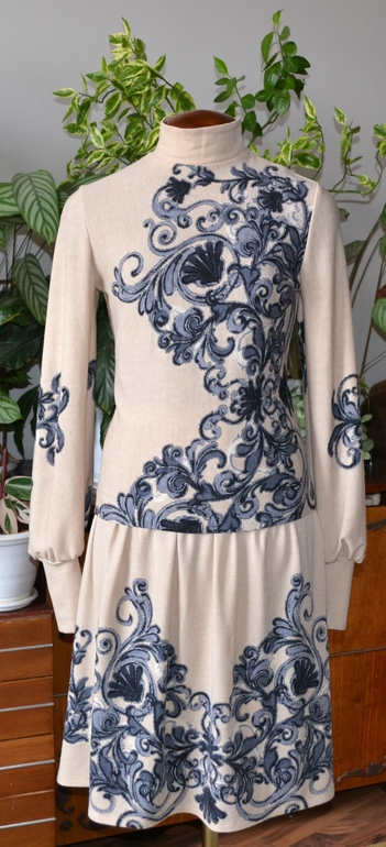 Водолазка с вытачками на груди, юбка на подкладе-сетке и просто на широкой резинке. Сзади, рисунок точно так же расположен, поэтому без фото.