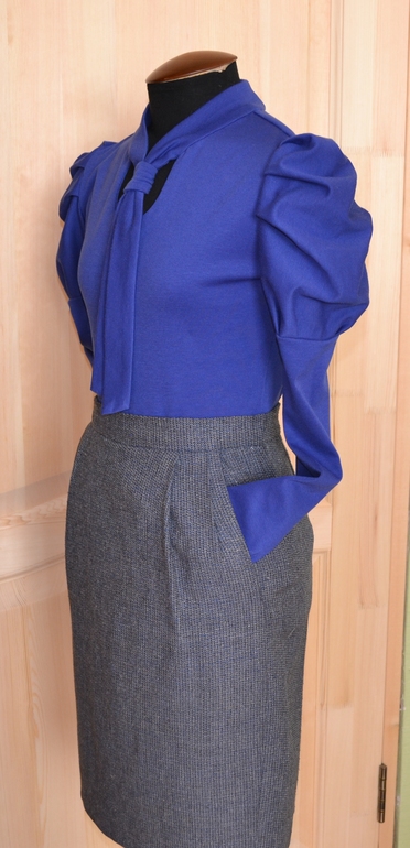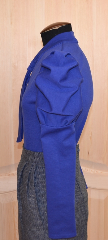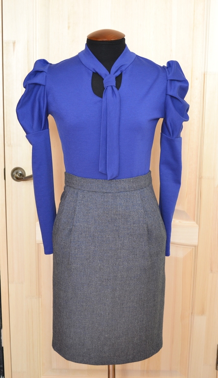 Такая вот трикотажная блузка с интересными рукавами. Сначала это было платье-чулок , завязки повязывала бантиком у шеи. Нравилось, но особо не носила, поэтому дала вторую жизнь. Обрезала и длину и завязки, переделав в галстук. Стало совсем моё-моё.