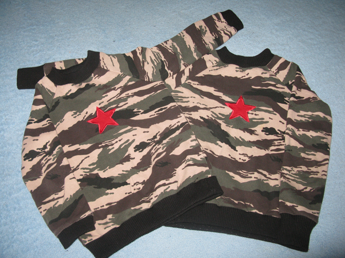 Шьем детямСшила кофту в стиле Милитари. Черный футер 2-х нитка с лайкой, на рукавах футер х/б. Декор клеевая аппликация на кармане и плече рукава. В боковом шве флажок. Так же сделала разрезы внизу боковых швов. Размер 134
