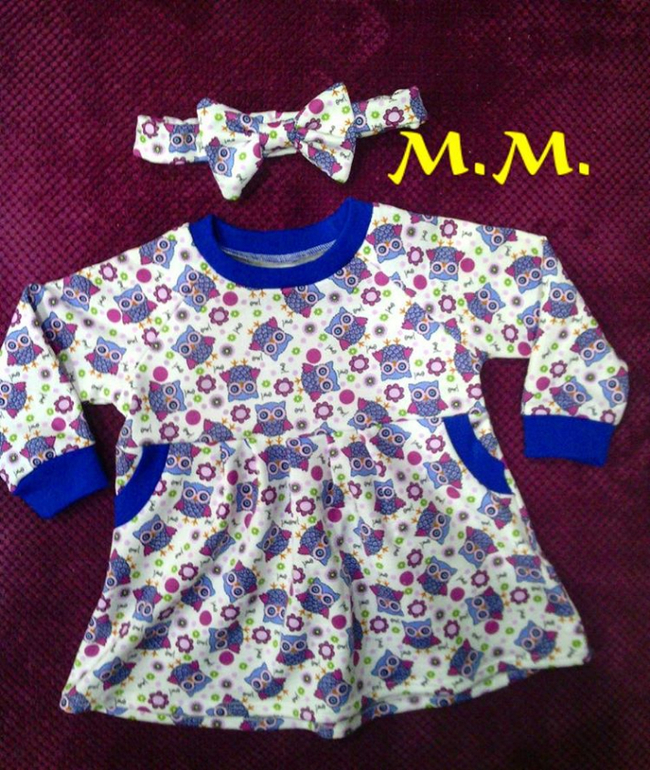Комплектик на первый день рождения для дочки подруги с форума,они родились на 10 дней позже нас. Первый раз шила платишко,делала карманы,складки и повязочку. Футер двухнитка с начесом,такая классная тканюшка, на отделке рибана.
