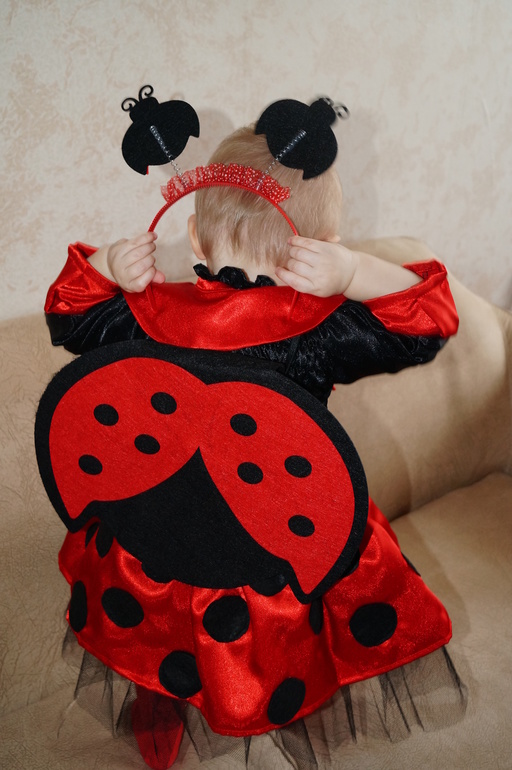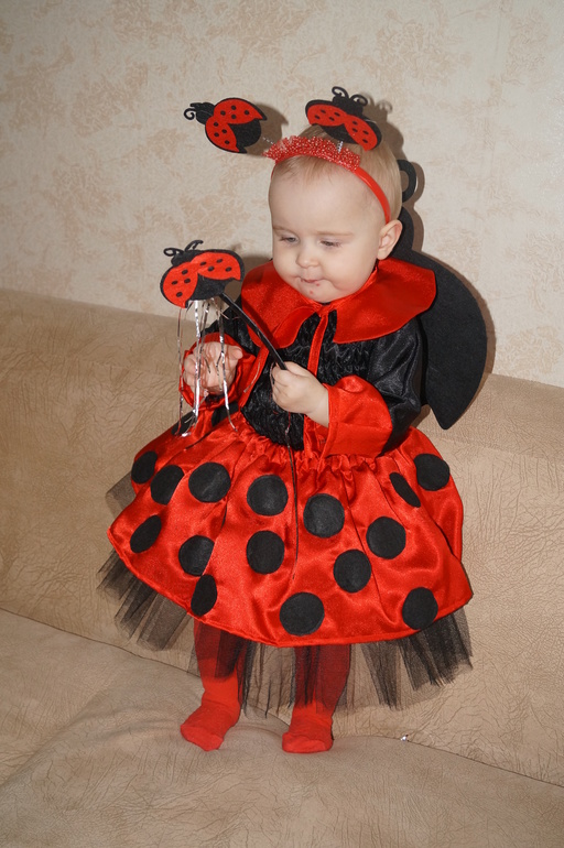 Шьем детямДавно я не занималась шитьем...целых 10 лет...Но с рождением дочери захотелось снова сесть за машинку.Почему то не было раздумий по поводу новогоднего костюма для Алисы, сразу решила,что это будет костюм божьей коровки))