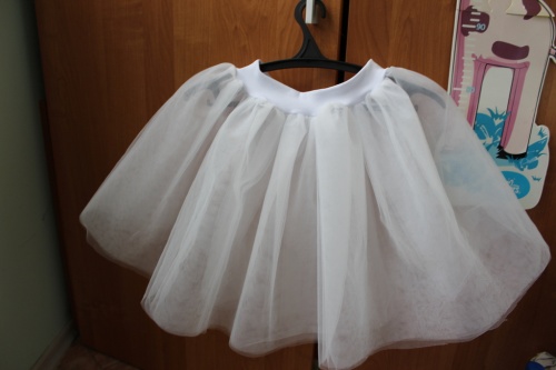 Отдельно сшила подъюбник из четырех слоев мягкого фатина, в дальнейшем его можно будет одевать и под другие платьица.