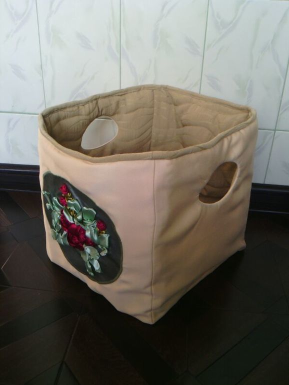 Менять привычки мне лениво некогда))) А вообще я давно хотела себе такую штуку. И вот руки дошли. Пошила такую вот квадратную большую корзину, куда можно складировать эти некрасивые горы белья в промежуточном состоянии.
