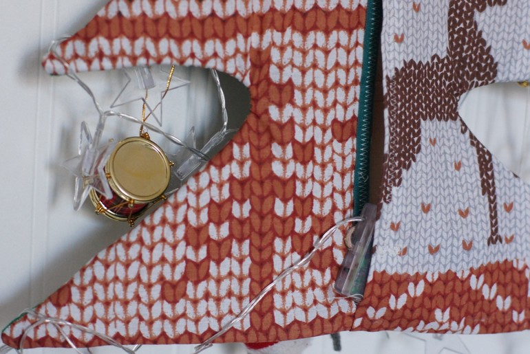 А сзади на липучке кармашек, куда хорошо кладётся отсек с батарейками от гирлянды.