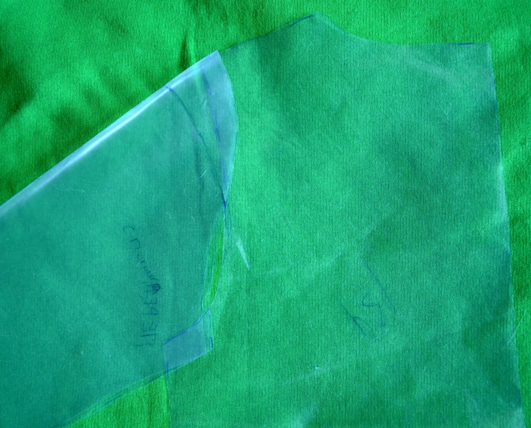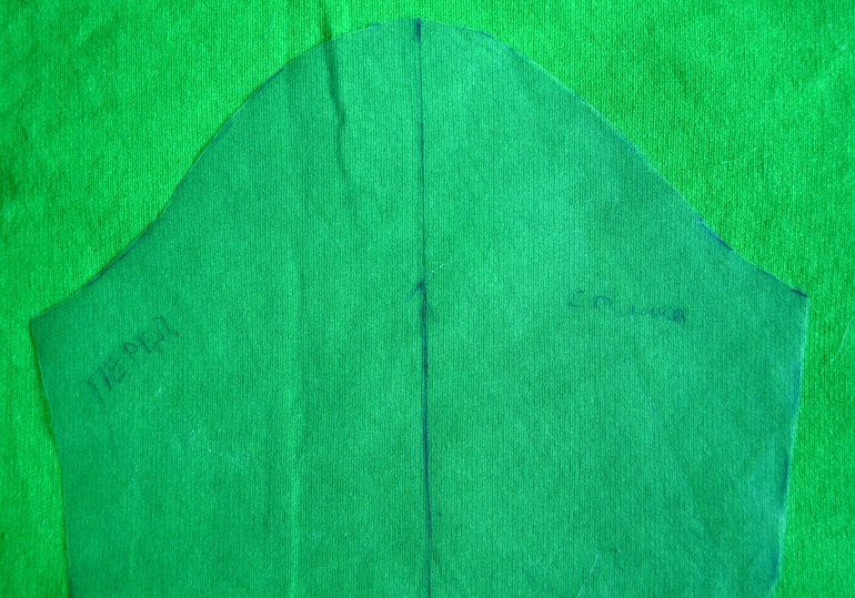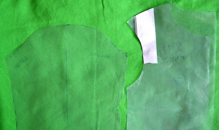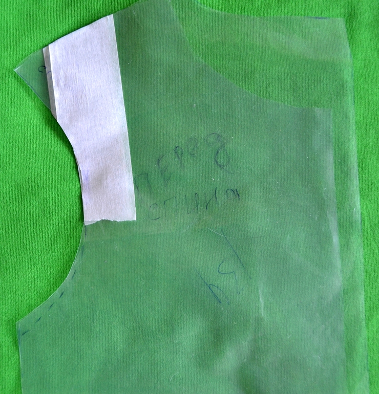 8. Теперь просто подрезаем излишки и выравнивая линии плеча и проймы. То же самое делаем со спинкой.