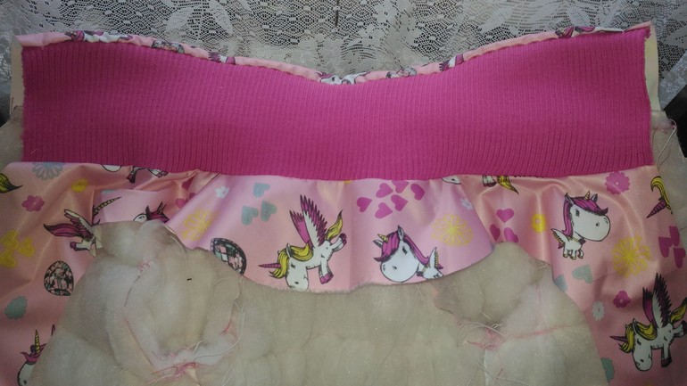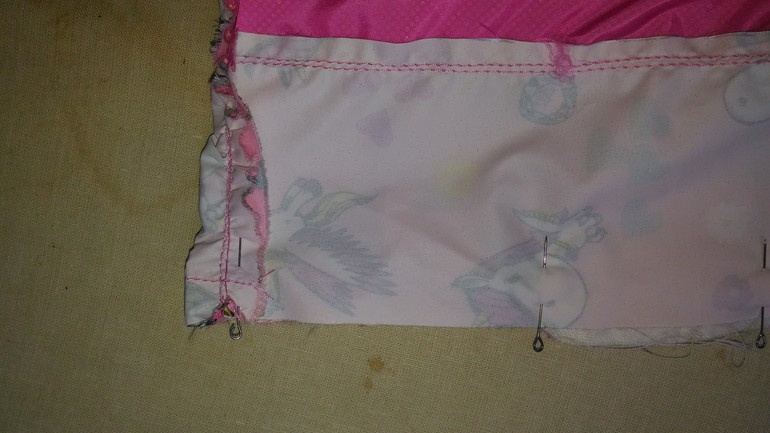 Следующий этап - соединяем нижний край подборта и нижний край переда из плащевки.
