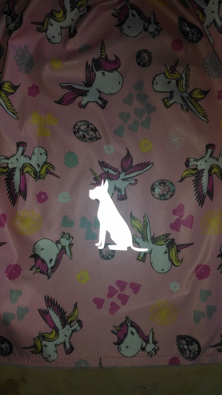 Потом вспомнила, что нужна светоотражайка. Теперь среди единорогов пес))