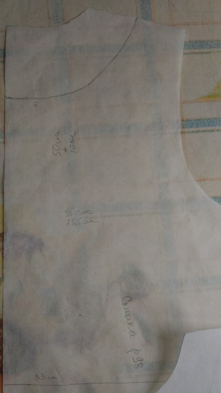 Тем же опытным путем, что и длину определяю место линии талии и отрисовываю - у меня это место разреза деталей, нижнюю часть я буду расширять, а затем присбаривать.