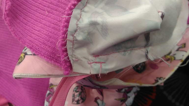 Осталось подпороть шов рукава из подкладки и через него зашить остаток низа