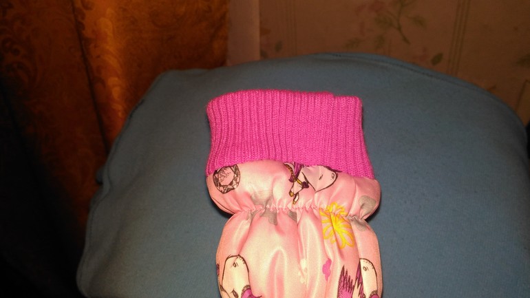 Теперь по имеющимся дырочкам аккуратно зашиваем рукав. Выворачиваем и любуемся))