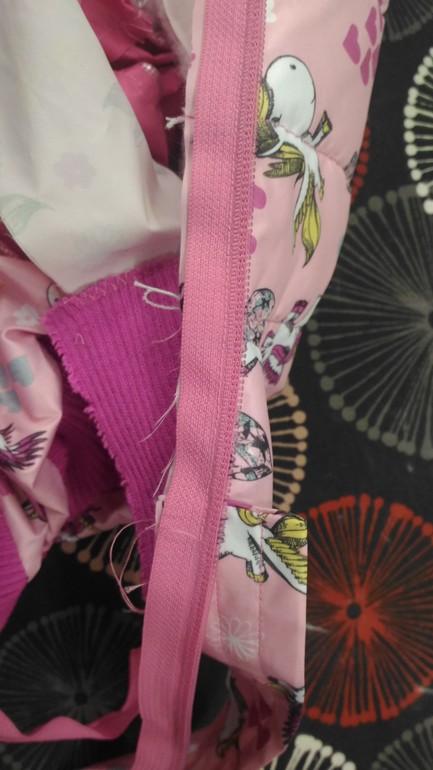 Теперь осталось сшить припуски горловины спинки из плащевки и внутренней. Этот этап сфоткать забыла.
